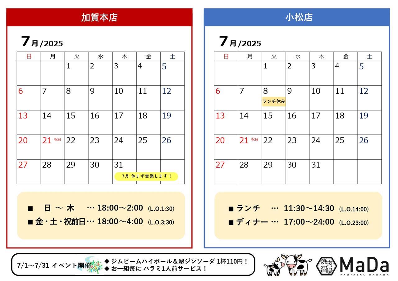 7月 休まず営業いたします💪🏻❤️‍🔥
